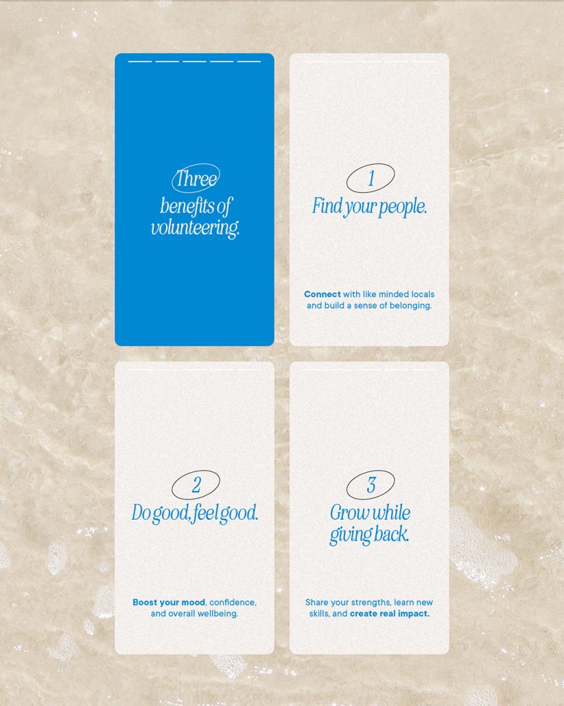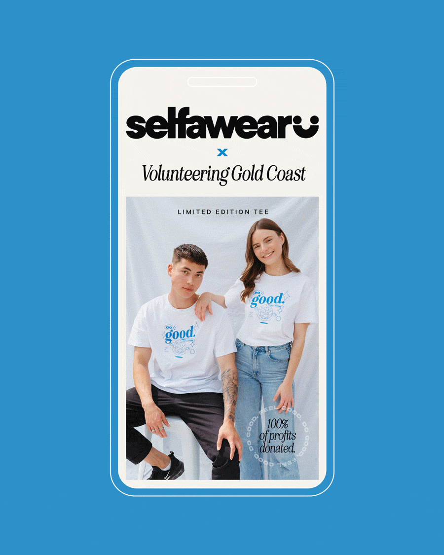 I led the creative direction for Selfawear’s collaboration with Volunteering Gold Coast, developed to engage young volunteers locally and promote the campaign’s message on a national scale. At the heart of the project was a limited-edition fundraising tee, which I designed specifically to resonate with younger audiences through bold, uplifting messaging. I planned and styled a photoshoot featuring the VGC team, then created and rolled out a full campaign, writing copy and designing assets across social media, email, and e-commerce platforms. The project launched with a beach clean-up event in partnership with Griffith University, where local volunteers wore the tee, while national sales helped spread the message and support the cause more broadly.